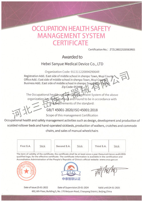 职业健康安全管理体系认证证书