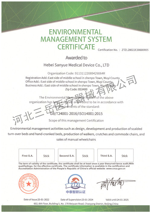 环境管理体系认证证书